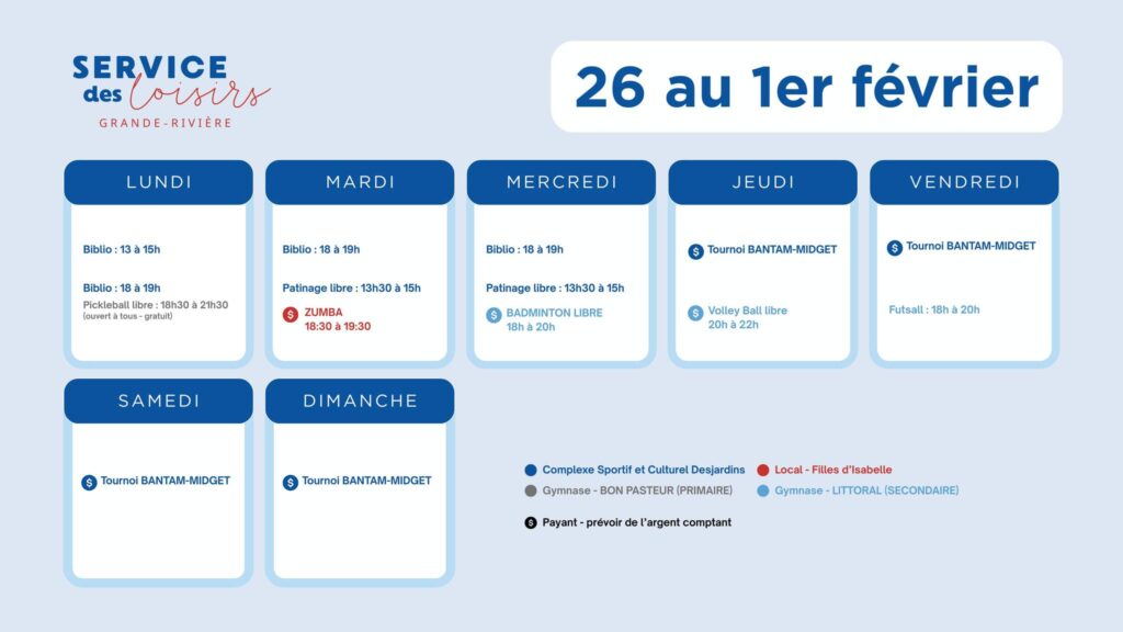 Activités – Semaine du 26 janvier au 1er février