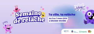 C’est le temps de bouger ! La Ville de Grande-Rivière vous propose une programmation variée pour toute la famille du 2 au 7 mars 2026.
