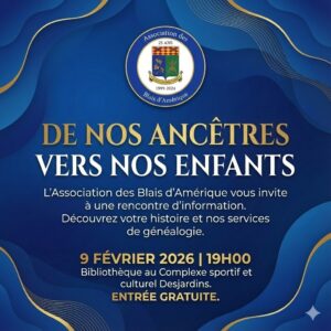 Activité organisée par Claude Blais. Vous êtes curieux de découvrir l’origine de votre nom, l’Association des Blais d’Amérique vous ouvre ses portes ! 📜 Nous