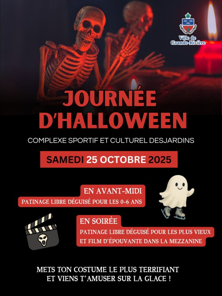 Le samedi 25 octobre, viens célébrer l’Halloween avec nous au Complexe sportif et culturel Desjardins ! En avant-midi de 10h à midi : patinage libre pour les tout-petits (0-6 ans) – déguisements bienvenus ! En soirée dès 18h : patinage libre pour les plus grands – mets ton costume le plus terrifiant sur la glace […]