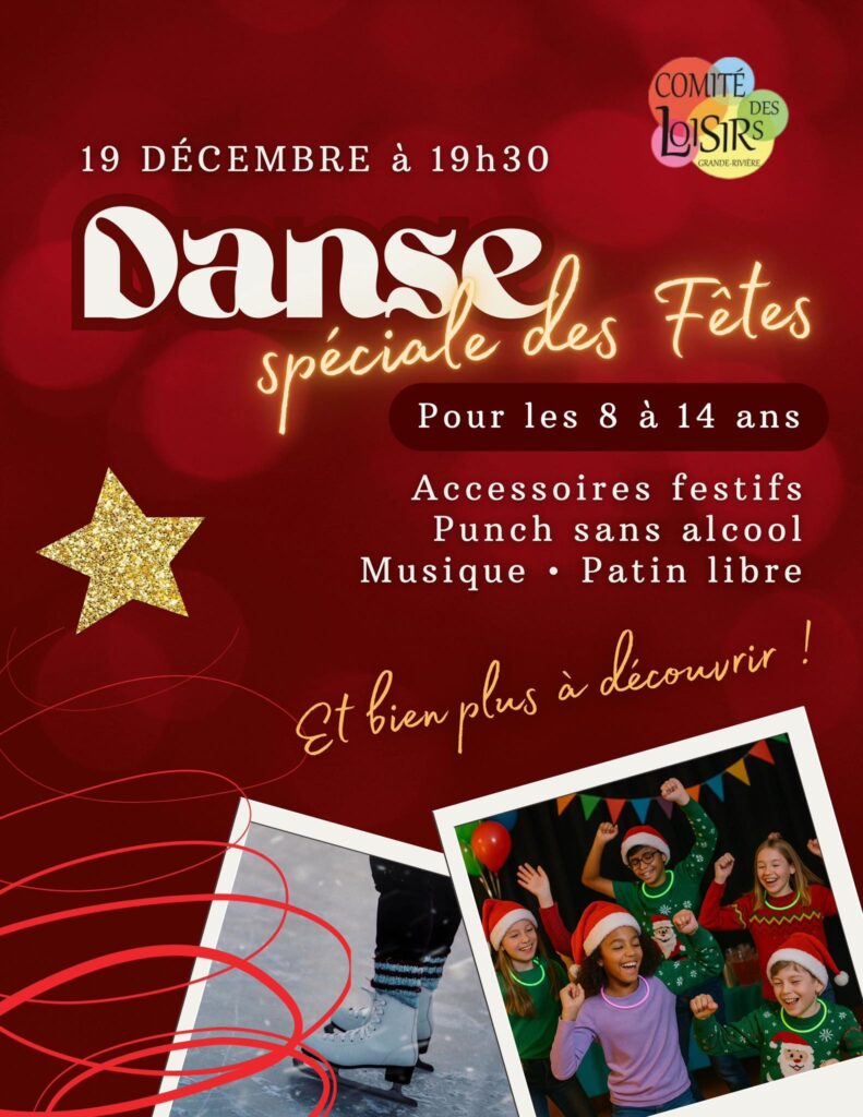 Le Comité des loisirs de Grande-Rivière invite les jeunes de 8 à 14 ans à une soirée festive qui se tiendra le 19 décembre dès 19 h 30 au Complexe sportif et culturel Desjardins. Cette activité spéciale des Fêtes proposera :• Accessoires festifs• Punch sans alcool• Musique et ambiance de célébration• Patin libre• Et plusieurs […]